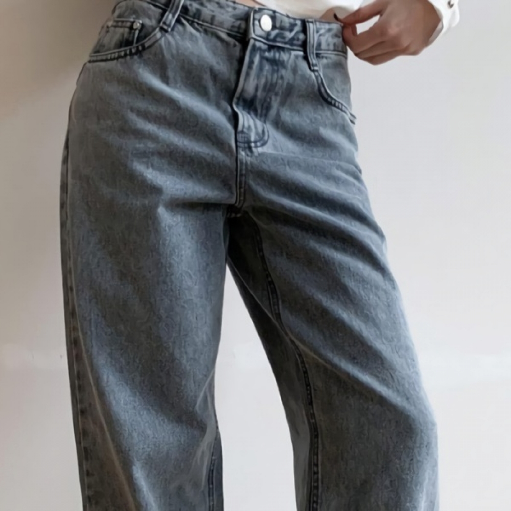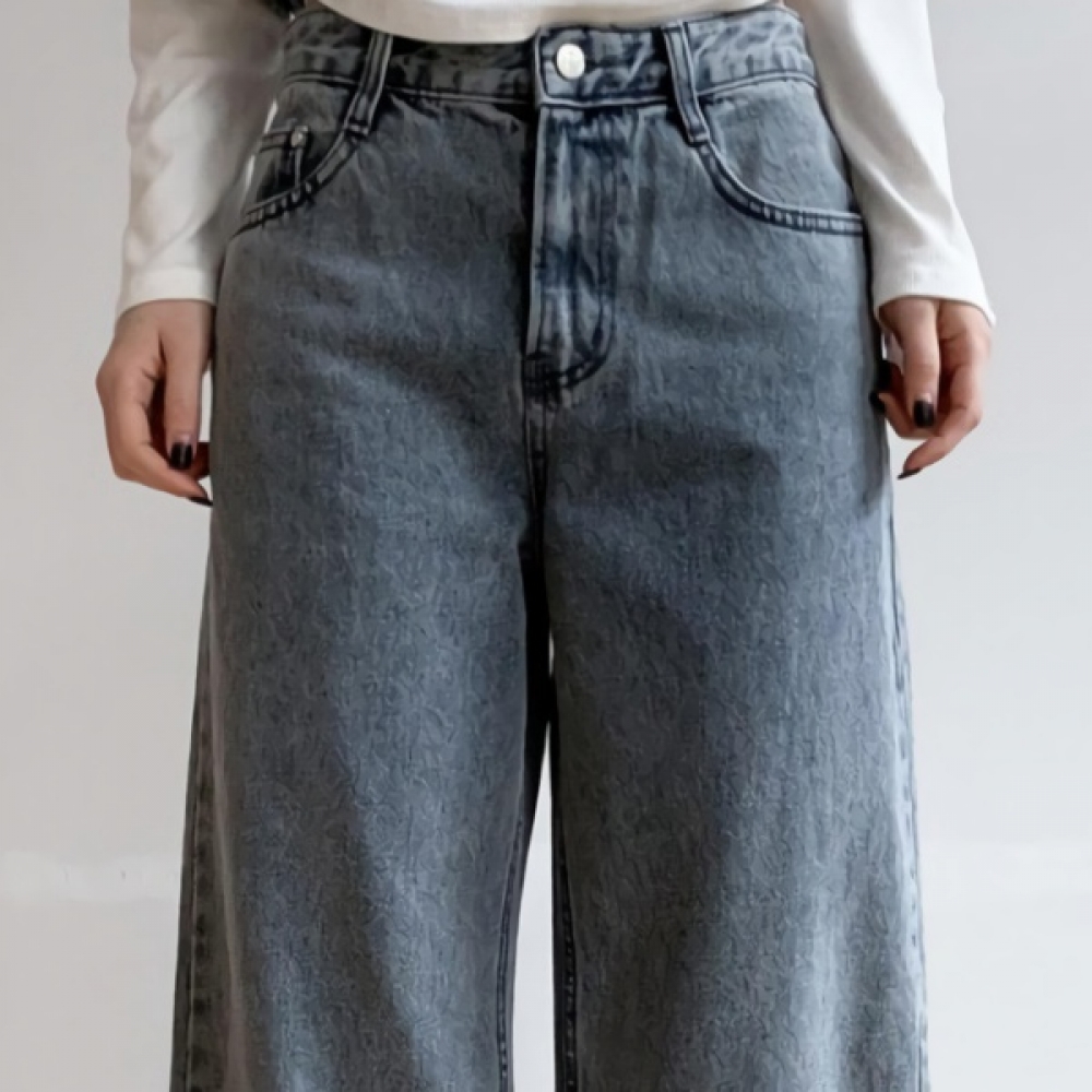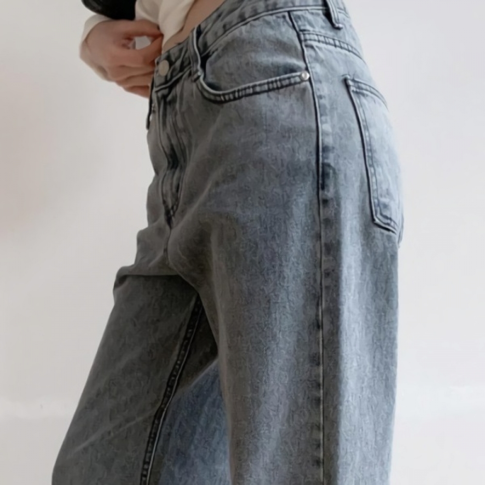 여성 워싱 스트레이트 와이드 데님 팬츠