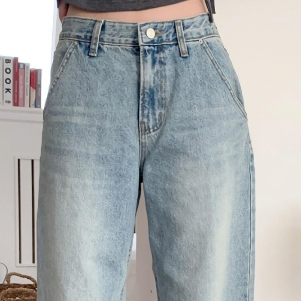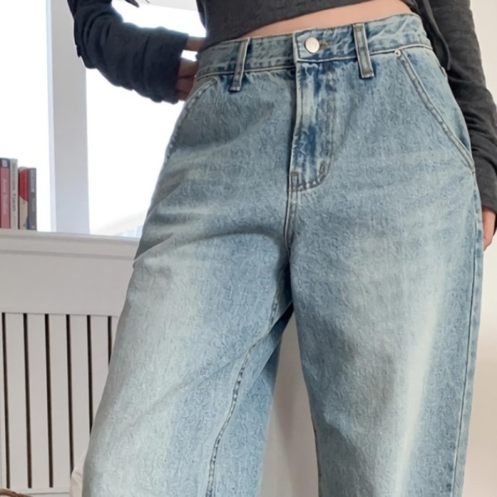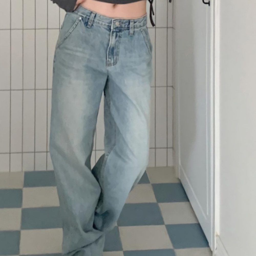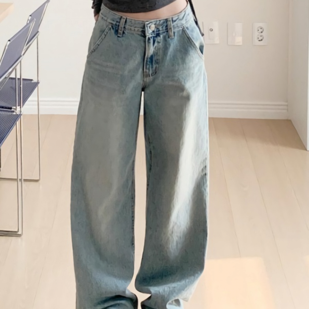 여성 워싱 스트레이트 와이드 데님 팬츠