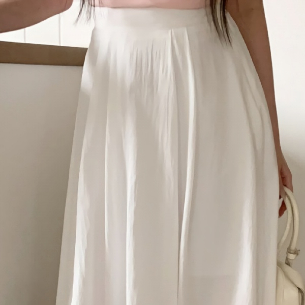 여성 투핀턱 플레어 A라인 뒷밴딩 롱스커트