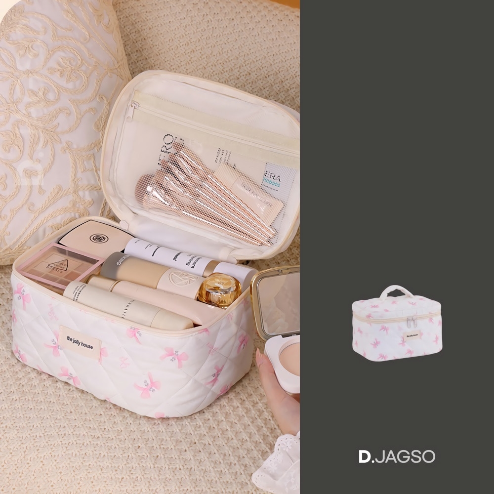 리본 포인트 화장품 대용량 손잡이 파우치