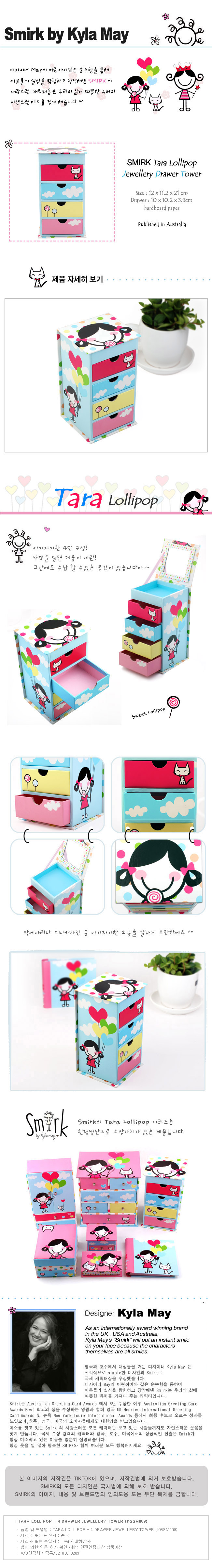 품명 및 모델명 TARA LOLLIPOP - 4 DRAWER JEWELLERY TOWER (KGSM009)