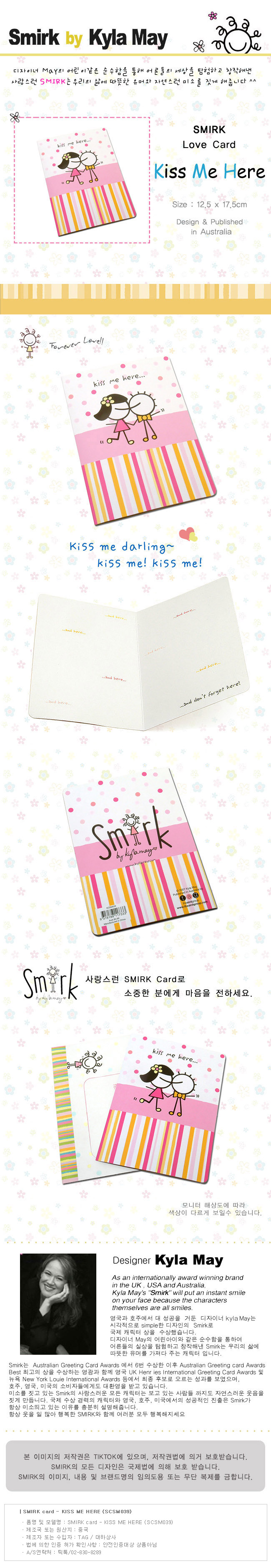 품명 및 모델명 SMIRK card - KISS ME HERE (SCSM039)