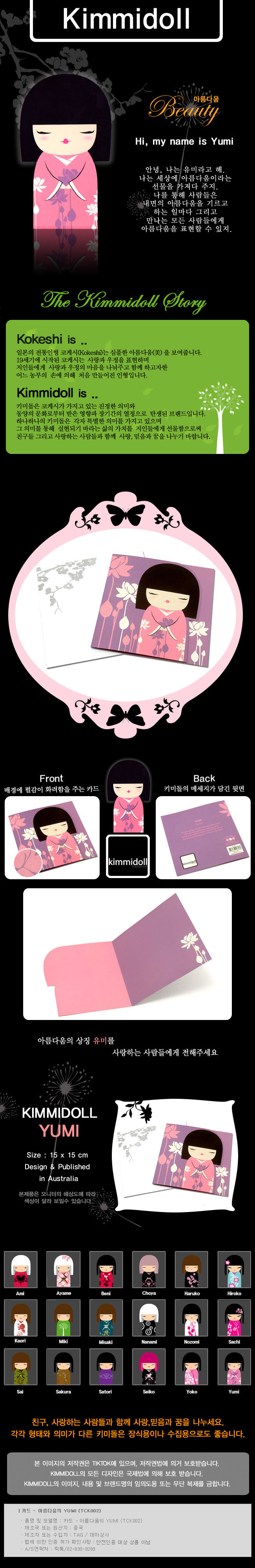 품명 및 모델명 나만의 수호인형 KIMMIDOLL CARD - YUMI (TCK002)
