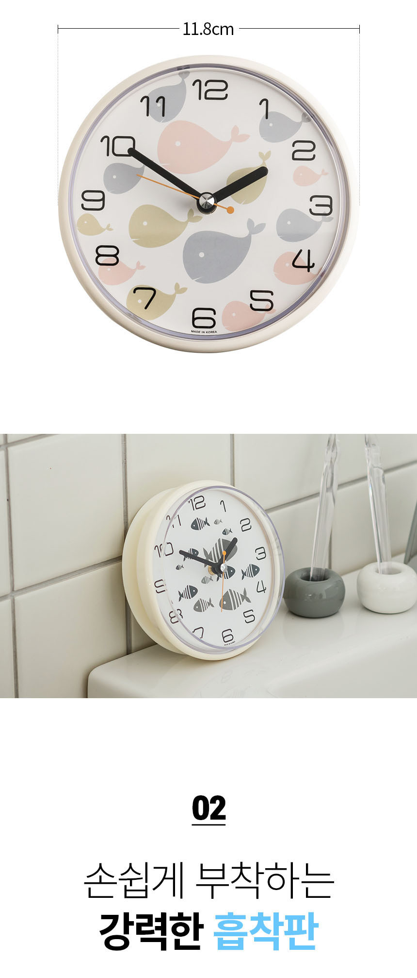 플라이토 디자인 욕실 흡착 방수시계 / 대한민국