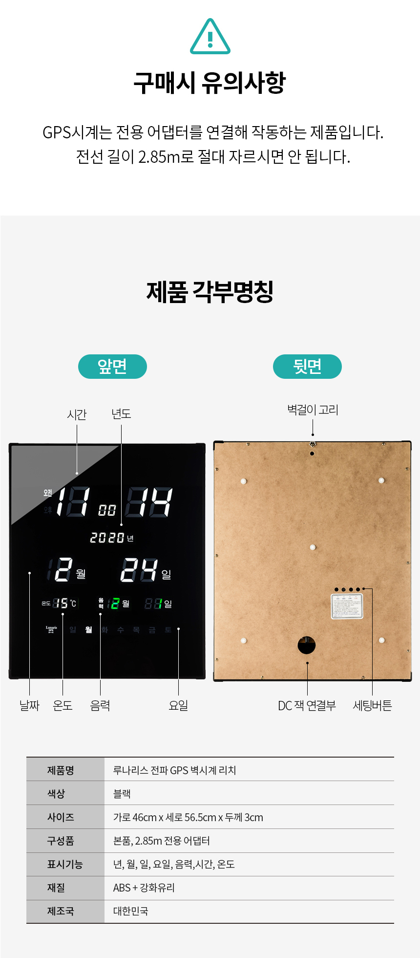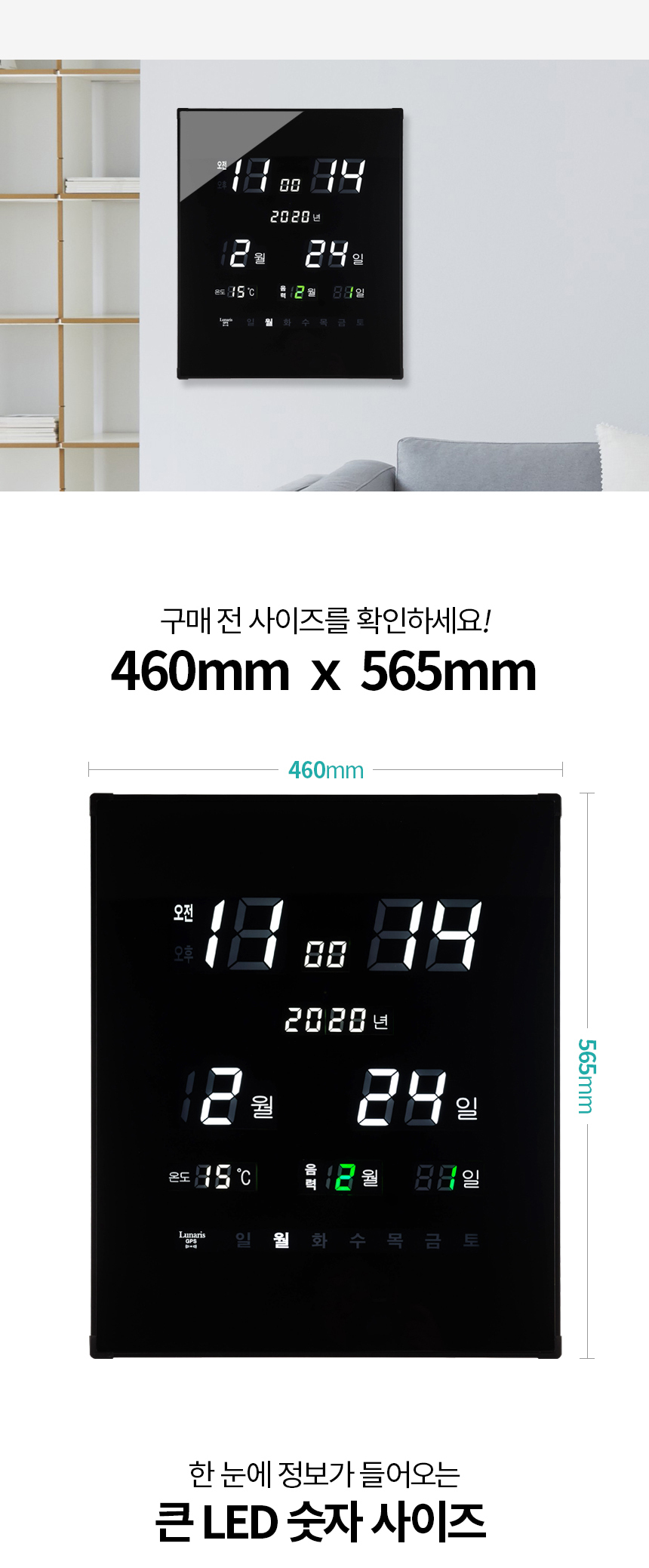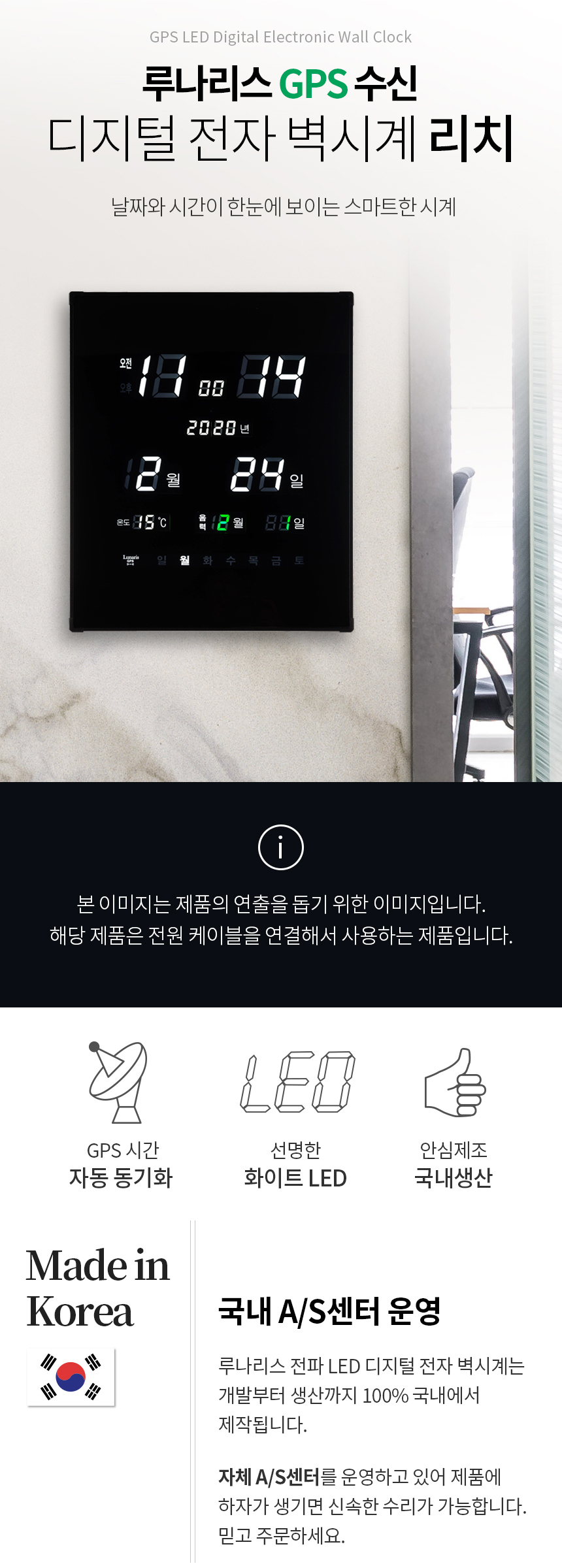 품명 및 모델명 국산 루나리스 GPS수신 리치 온습도 LED 전자벽시계