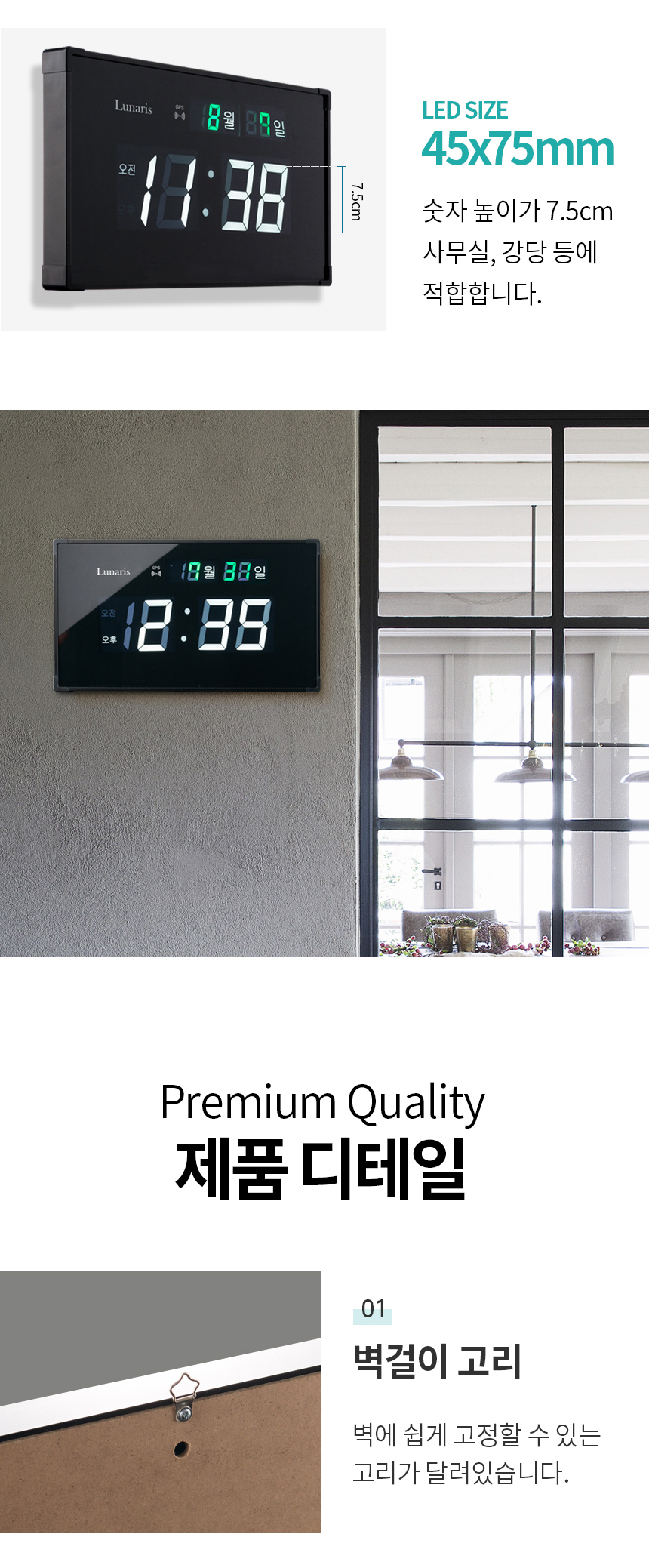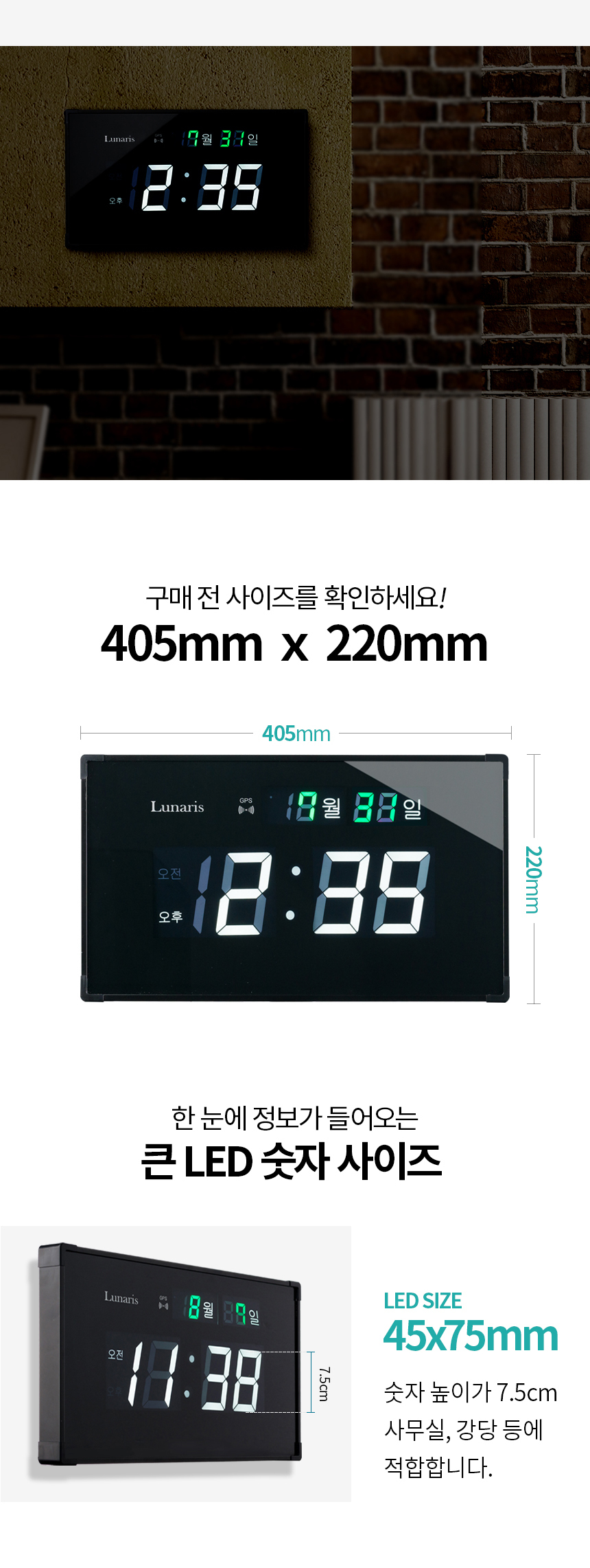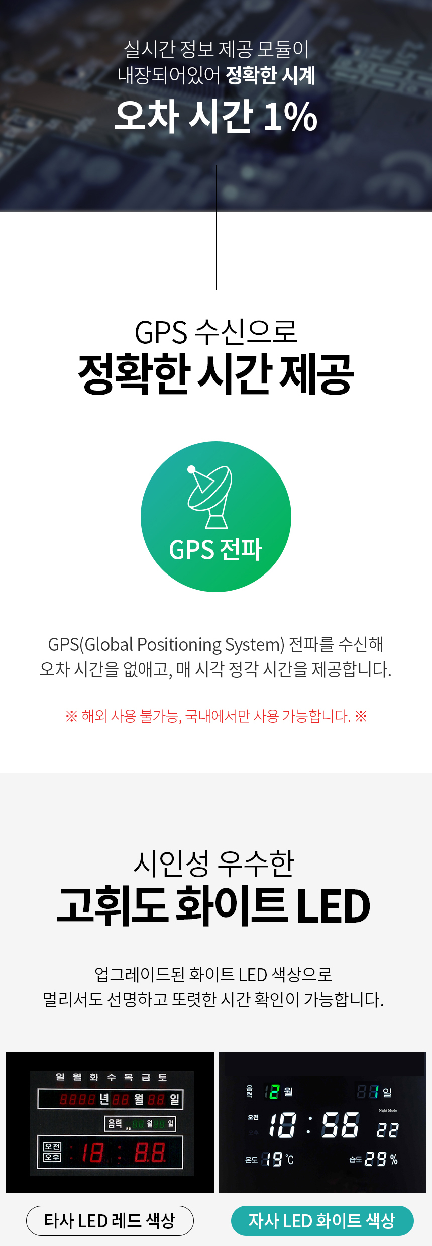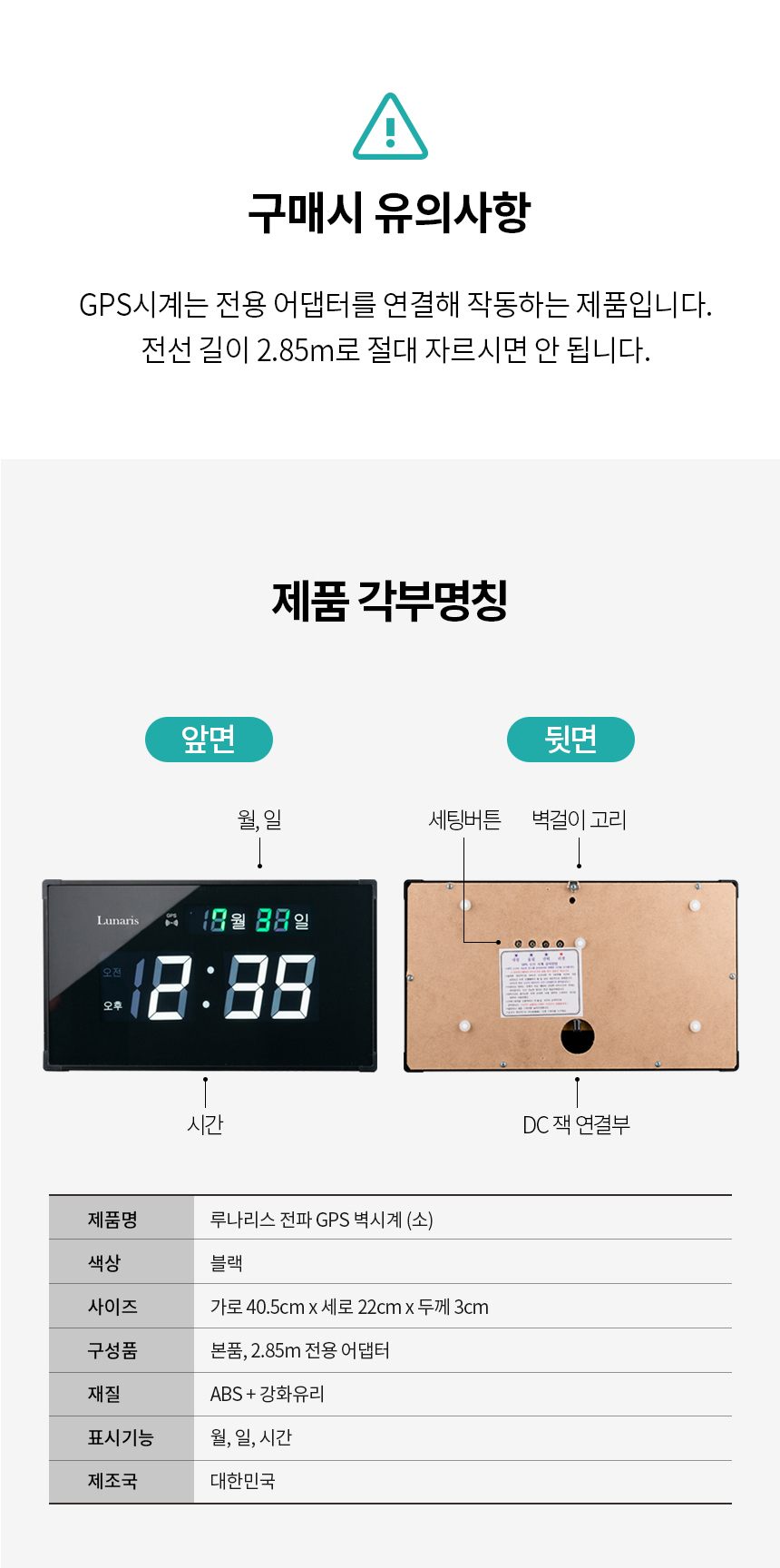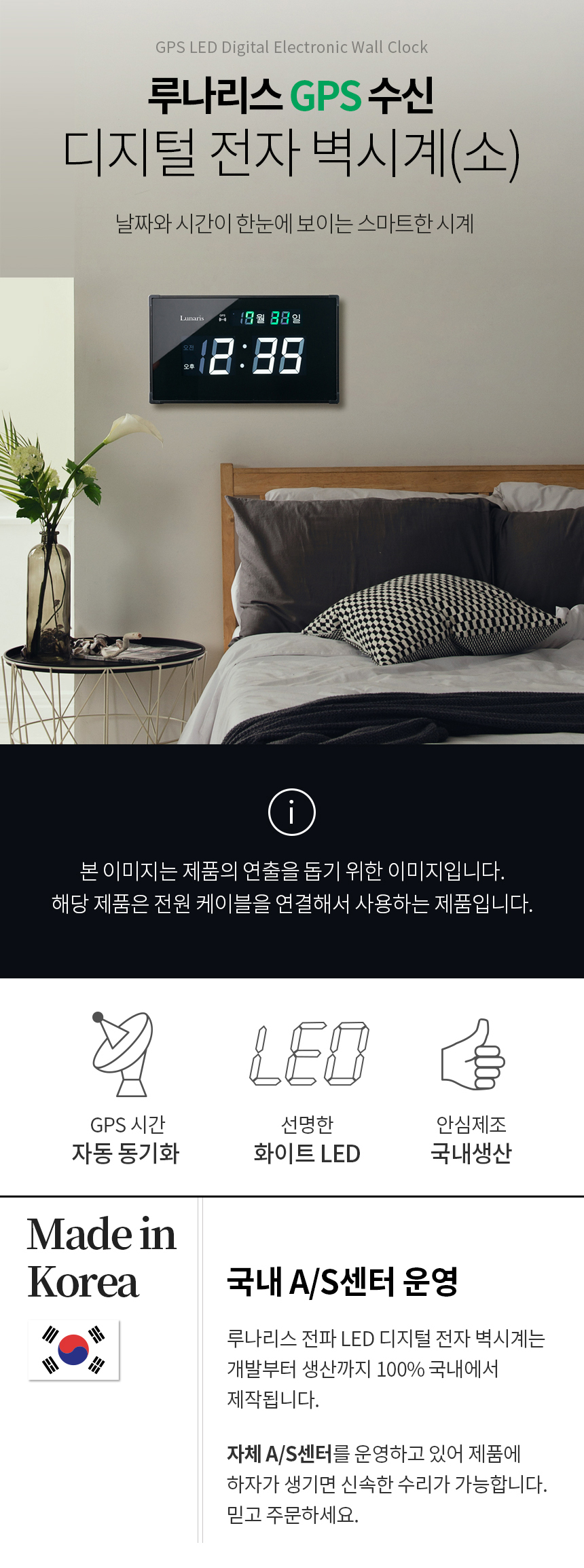 품명 및 모델명 국산 루나리스 GPS 수신 LED 디지털 전자벽시계(소)