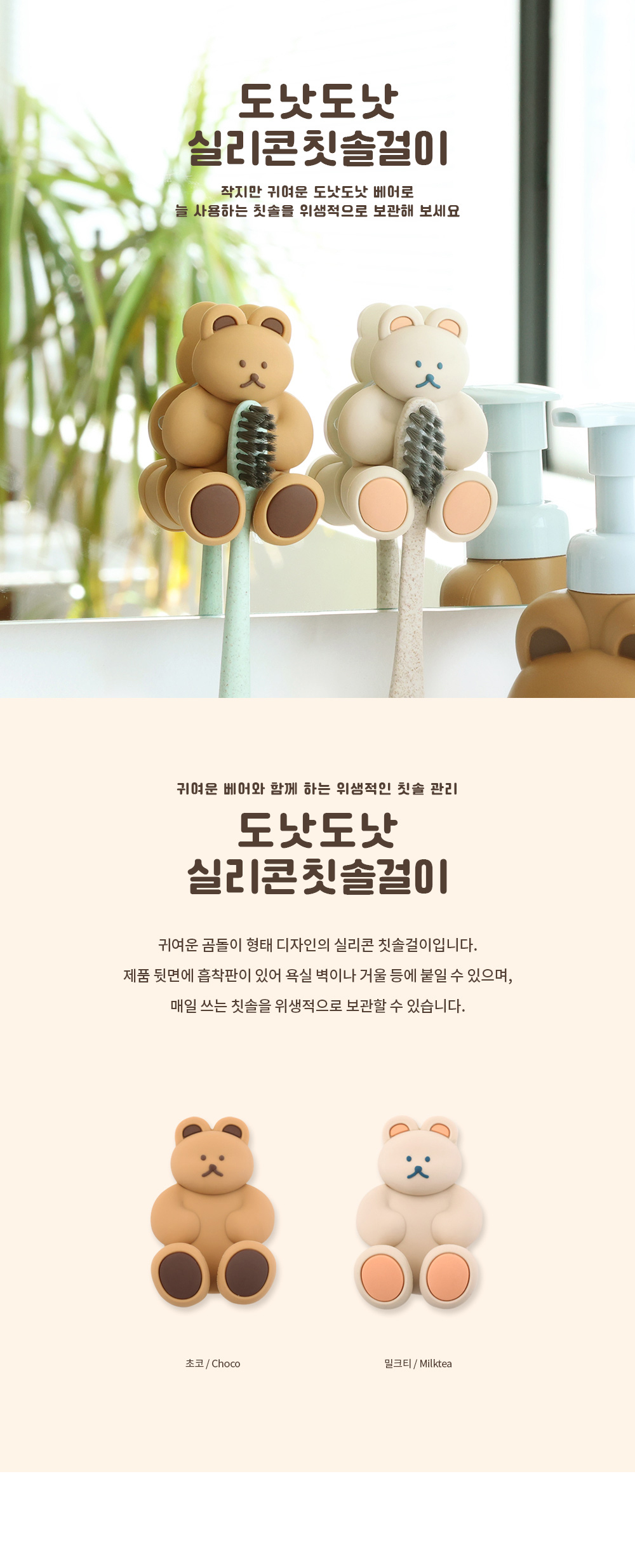 베이지브라운 버니 앤 퍼피 실리콘 칫솔걸이