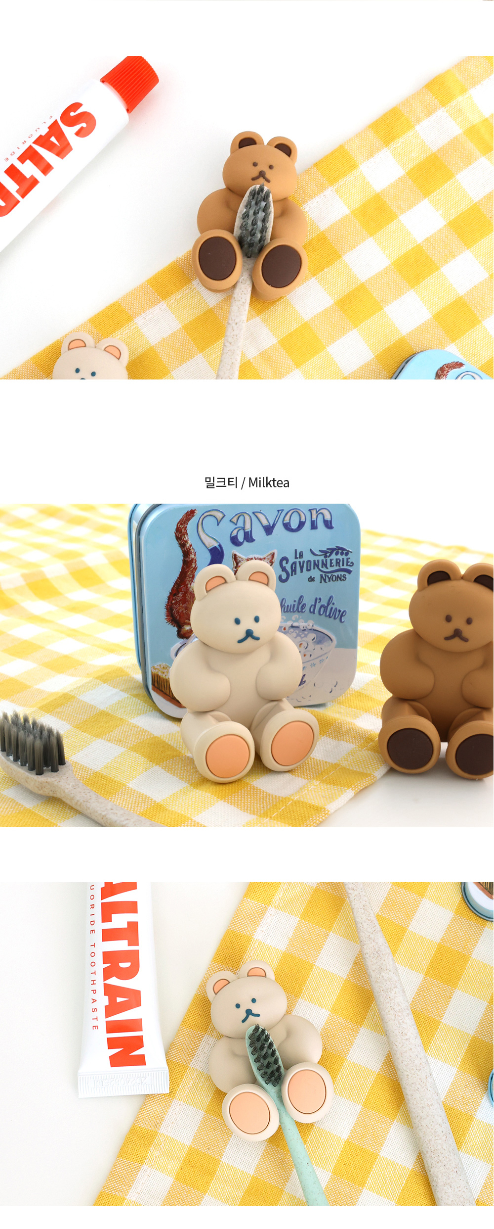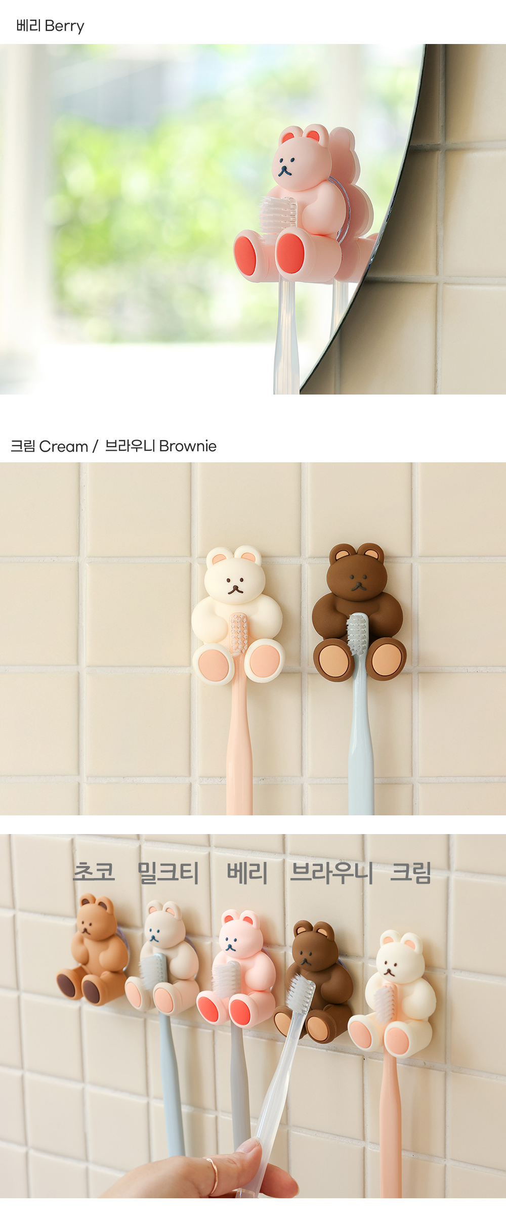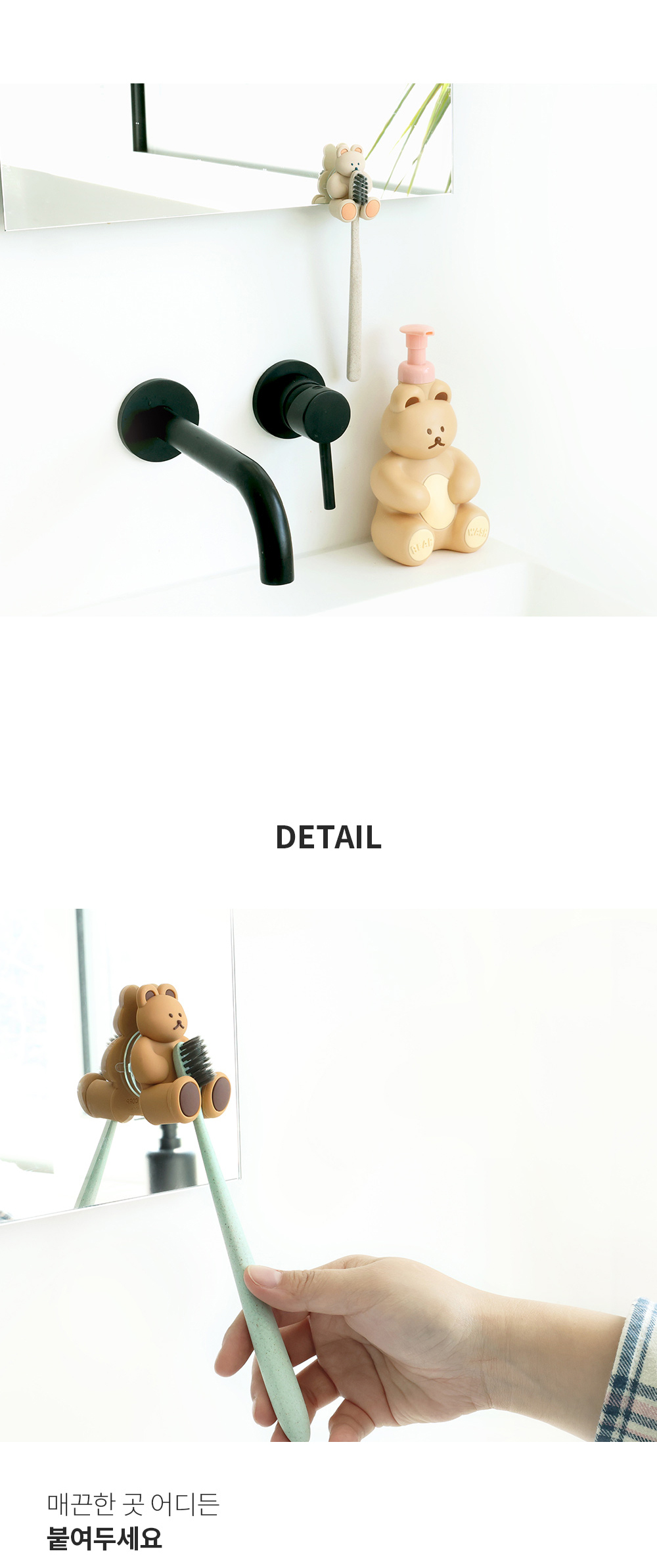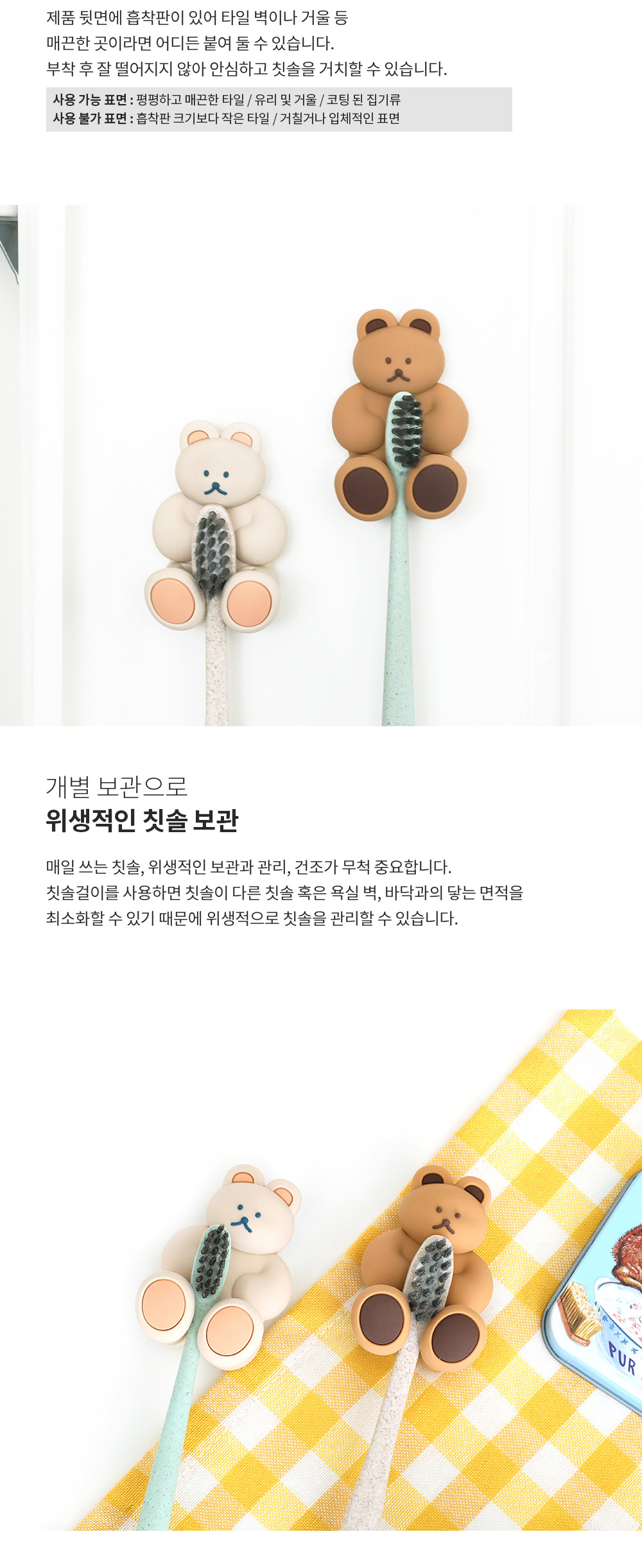 베이지브라운 북극곰 칫솔걸이 실리콘 흡착 꽂이