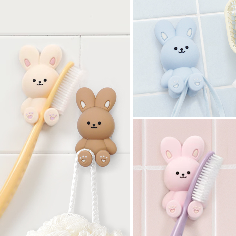 베이지브라운 토끼 칫솔걸이 실리콘 흡착 스티커 꽂이