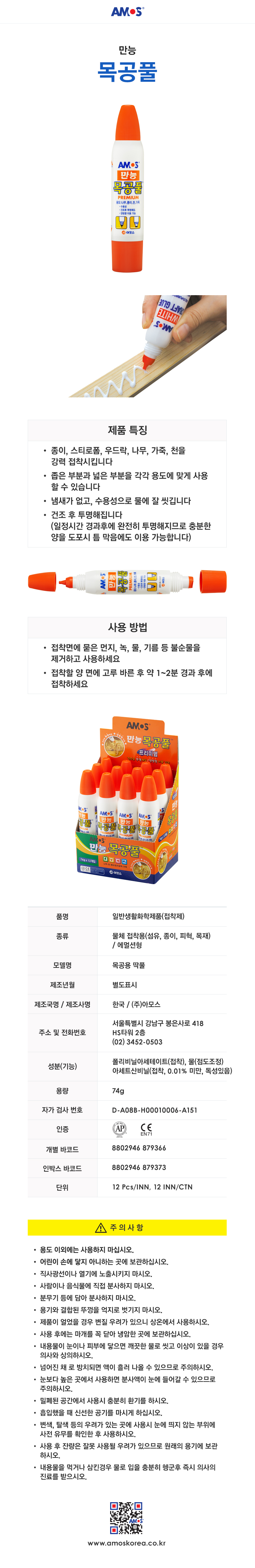 품명 및 모델명 만능목공풀 74g (12개 1세트)