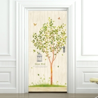 현관문시트지 엠보에어프리 로맨스그린버드
