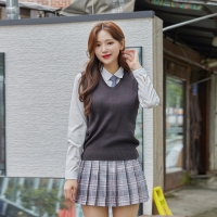 남녀공용 아카일패턴 브이넥 교복조끼(2color) 교복