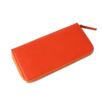 캐러티 수제 여성용 지퍼장지갑 오렌지 중앙로고