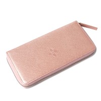 캐러티 수제 여성용 지퍼장지갑 핑크 코너로고