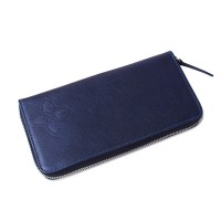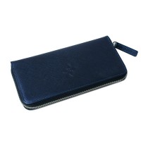 캐러티 수제 여성용 지퍼장지갑 네이비 포인트로고