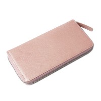 캐러티 수제 여성용 지퍼장지갑 핑크 포인트로고