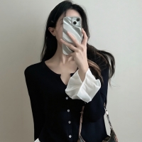 여성 겨울 핀턱 퍼프 소매 로맨틱 니트