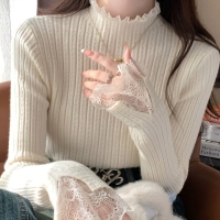 여성 가을 겨울 레이스 반폴라 니트탑