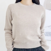 여성 코튼 로아 간절기 베이직 라운드 니트