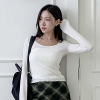 여성 가을 겨울 언발 레이어드 골지 니트