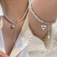 여성 s925 실버 볼드 체인 하트 목걸이 팔찌