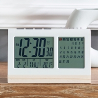 베이지브라운 리얼우드 LCD 인테리어 탁상시계