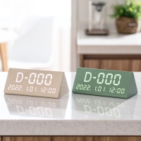 베이지브라운 우드 디데이 인테리어 LED 탁상시계