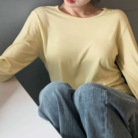 여성 라운드 쫀쫀 긴팔 베이직 티셔츠