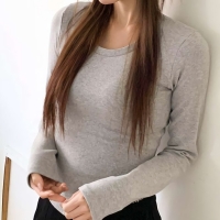 여성 쫀쫀 스판 유넥 밑단 굴림 슬림 긴팔티