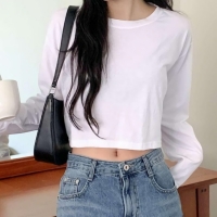 여성 봄 데일리 크롭 긴팔 티셔츠