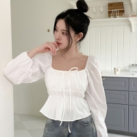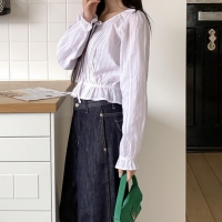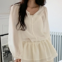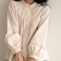 여성 봄 여름 핀턱 프릴 캉캉 블라우스