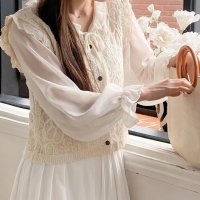 여성 봄 나시 레이어드 망사 밑단 셔츠