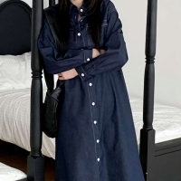 여성 봄 데일리 롱 데님 셔츠 원피스