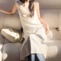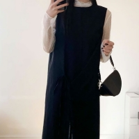 여성 묶음 포인트 라운드 민소매 롱 원피스