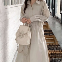 여성 포켓 스트링 바스락 셔츠 롱 원피스