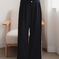 여성 겨울 단추 스판 면 와이드 핀턱 팬츠
