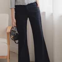여성 사이드 절개 밴딩 세미 와이드 데님 팬츠
