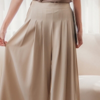 여성 겨울 미션 플리츠 밴딩 와이드 팬츠