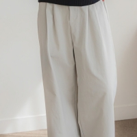 여성 투핀턱 스티치 와이드 코튼 팬츠