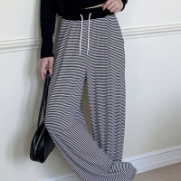 여성 와이드 스트링 코튼 밴딩 팬츠