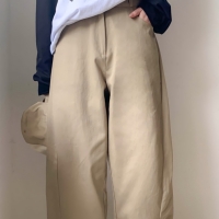 여성 겨울 커브드 절개 와이드 코튼 팬츠