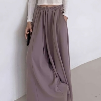 여성 찰랑 치즈 스판 밴딩 와이드 팬츠