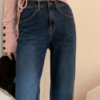 여성 빈티지 워싱 일자 밴딩 데님 팬츠