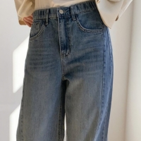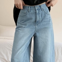 여성 봄 데일리 와이드 워싱 데님 팬츠