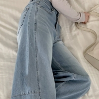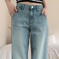 여성 워싱 스트레이트 와이드 데님 팬츠
