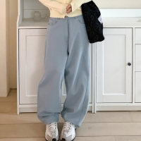 여성 커브드 배럴 배기 코튼 밴딩 팬츠