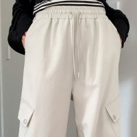 여성 봄 데일리 플립 포켓 와이드 밴딩 팬츠