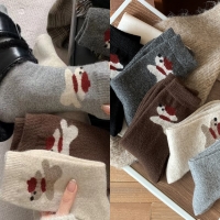 여성 겨울 캐릭터 퍼피 양털 중목 기모 양말