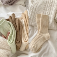 여성 겨울 아가일 퀼팅 양털 중목 양말