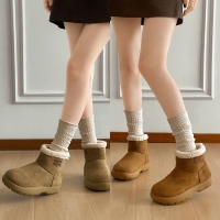 여성 겨울 3color 통굽 퍼 스웨이드 숏 부츠